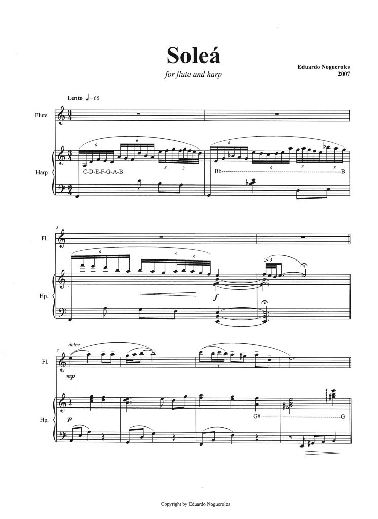 SOLEÁ (3:30) es una deliciosa pieza en la cual la flauta presenta una melodía melancólica y suave acompañada por el arpa, que sustituye a la tradicional guitarra española en el acompañamiento, incluyendo algunos de sus efectos típicos, como el rasgueo y el golpeo del cuerpo del instrumento.