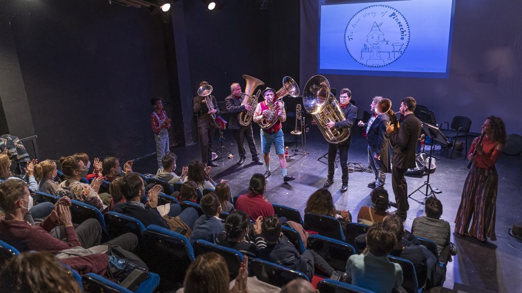 Pinocho, el muñeco de madera tallado por Gepetto, debe ser sincero, bondadoso y obediente si quiere convertirse en un niño de verdad. Pero su curiosidad y su carácter travieso le llevarán a conocer excéntricos personajes y a vivir sorprendentes aventuras, incluyendo la de aprender a tocar un instrumento musical como la Tuba.